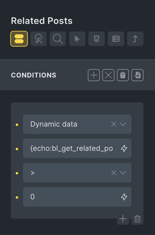 But Bricks’ query result count dynamic tag does not work in nested loops. This means it is not possible out of the box to show conditional headings of “Related Post” and “Related Posts” based on the number of related posts. Also, you would want the related posts list itself be output only if there is at least 1 related post so there is no empty markup.