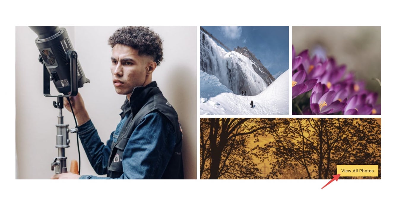 We are going to set a fixed height for the gallery with overflow: hidden so that only a few images will be shown and the user can either click on any of the images or on the “View All Photos” button and browse all of them in the lightbox.