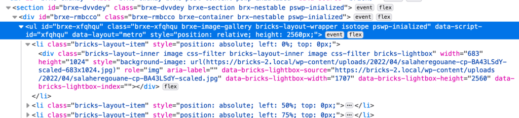 As we can see, the lightbox gets initialized when the clicked element has a class of bricks-lightbox.