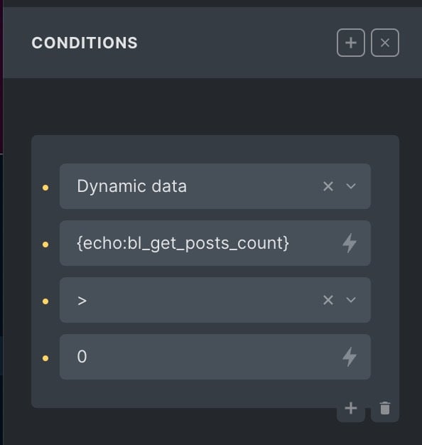 Apply this condition to the element(s) that you wish to be output only if there is at least 1 post that matches our query.