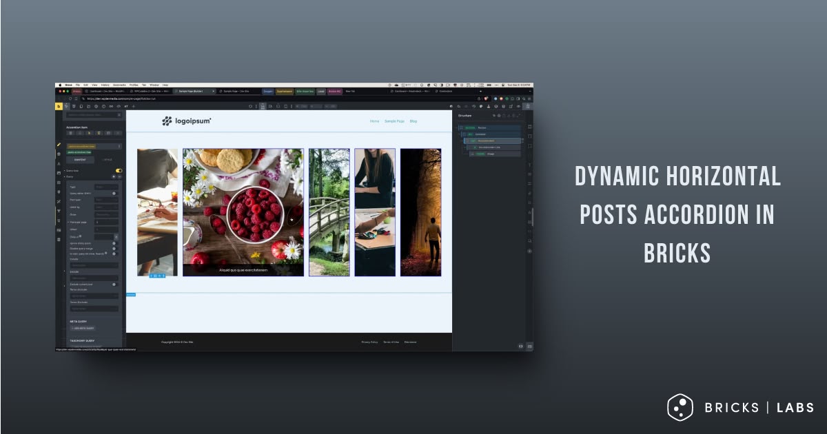 This Pro tutorial provides the steps to set up a horizontal accordion of featured images of posts output by a Bricks query loop so that each image expands smoothly, making the others shrink as they are hovered.