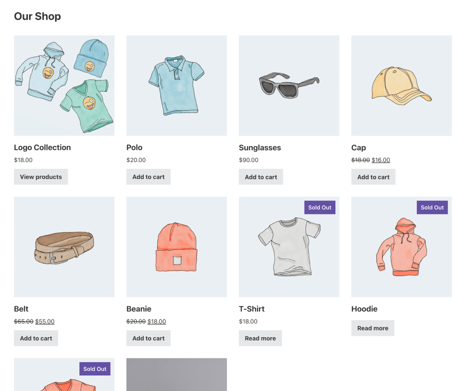 One way in which this can be done is by defining a custom function that checks the product object’s is_in_stock method and returns the HTML followed by using this function inside the Products element as a field.