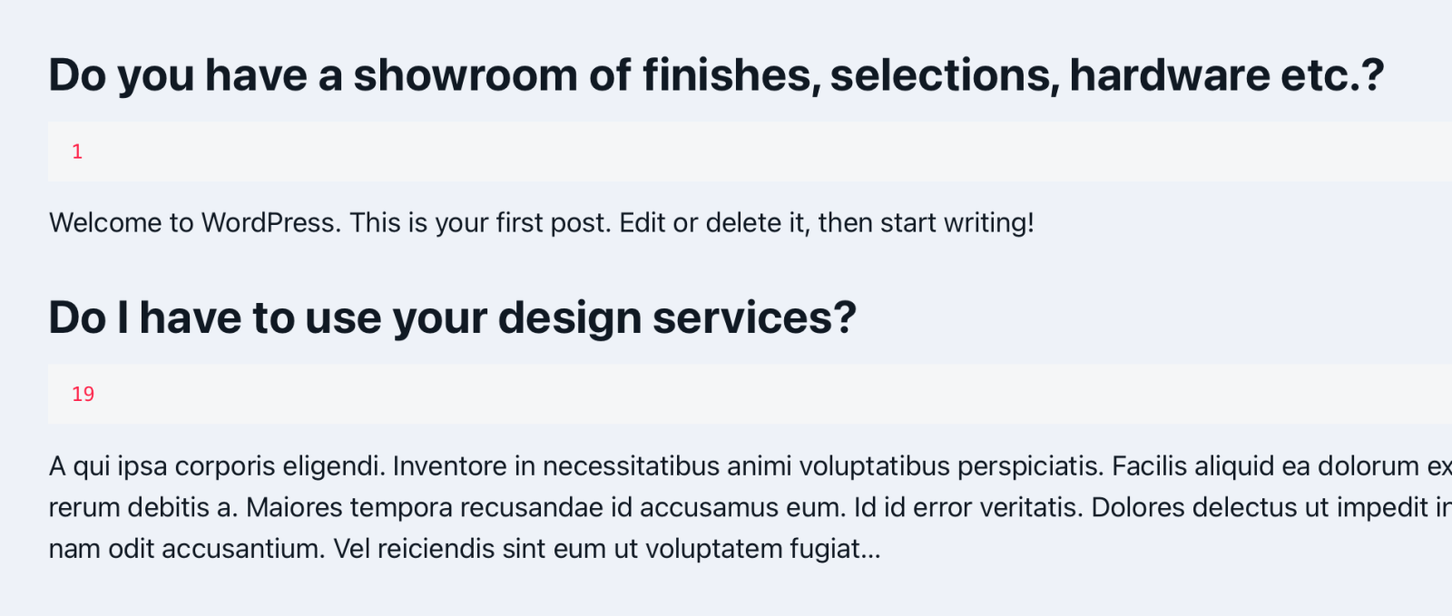 On the front end we want to show the question heading and below that, the content (rather the excerpt) of the selected answer post for each question as the answer.