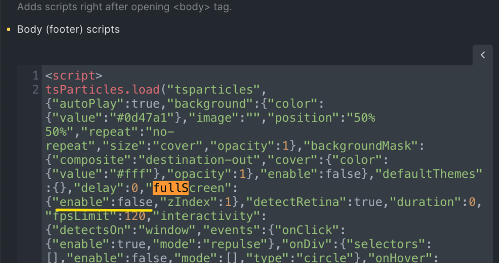 if ( is_front_page() ) conditional ensures that the tsparticles JavaScript file gets loaded only on the homepage. If you are working with a different kind of page, you would need to modify the if condition accordingly.